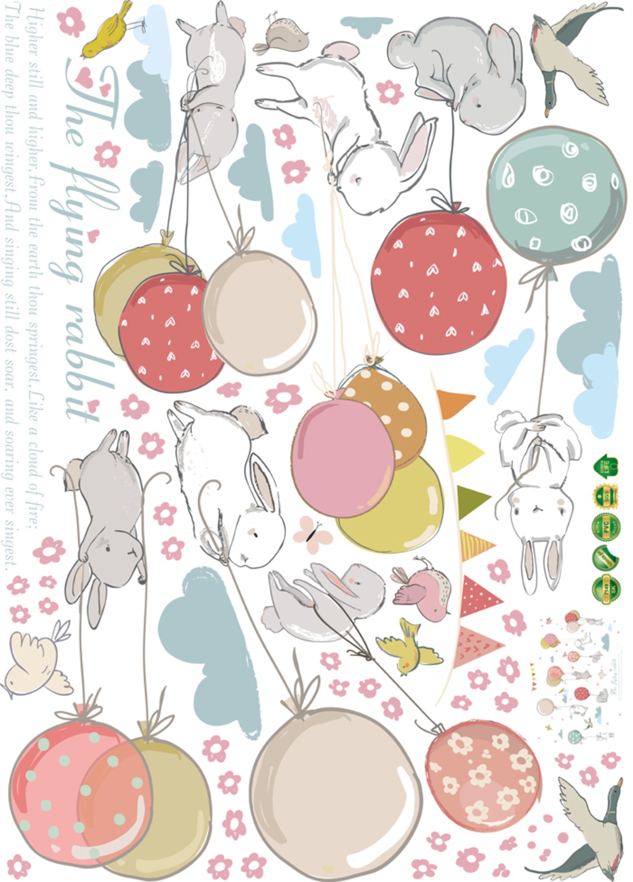 可愛いウォールステッカー フワフワ風船とうさぎ⑥
