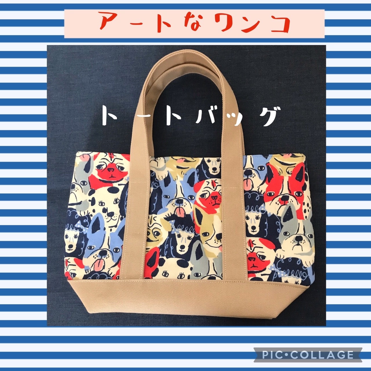 ワンコ柄(アートなワンコ) お散歩トートバッグ♪ ハンドメイド