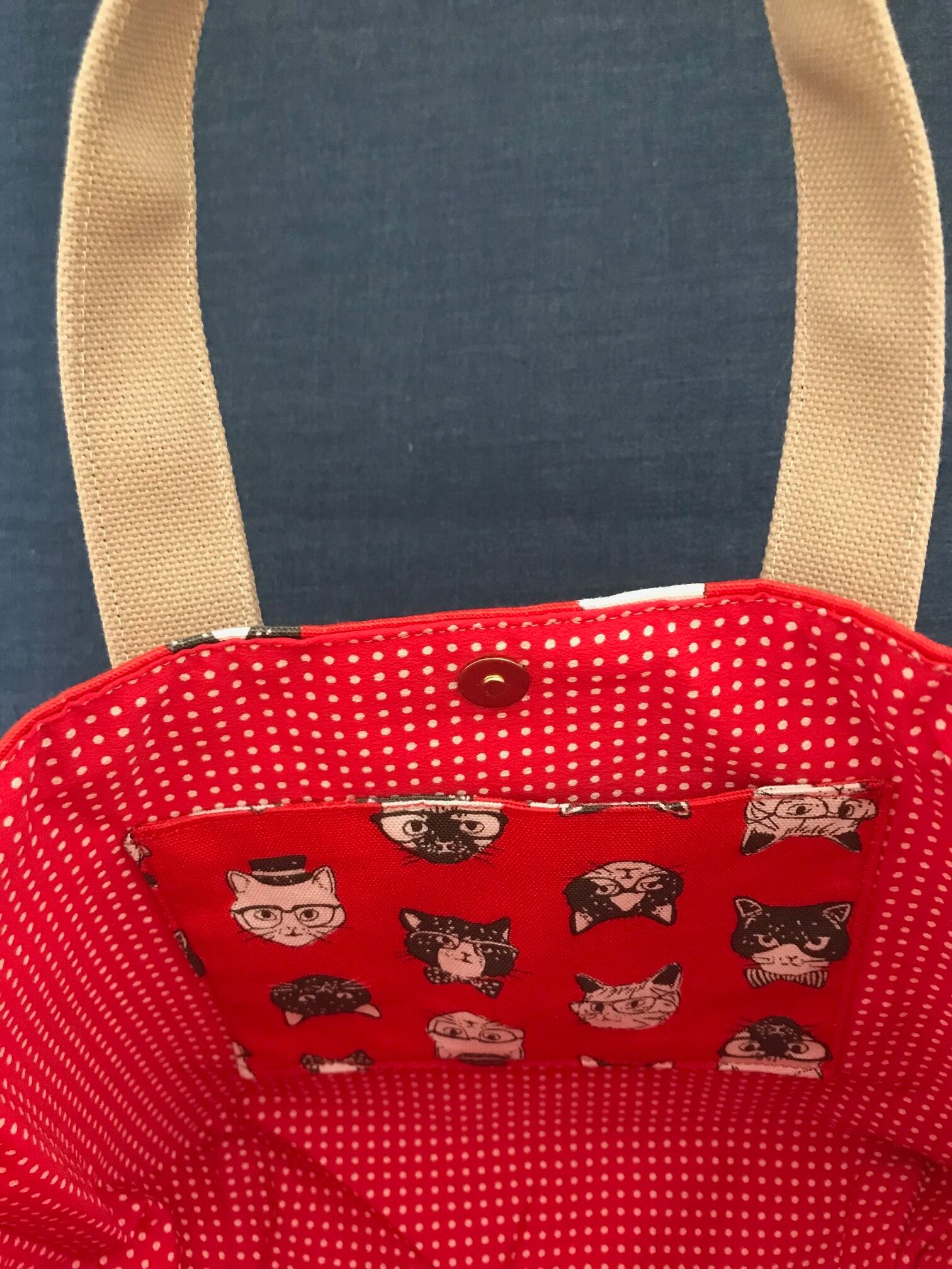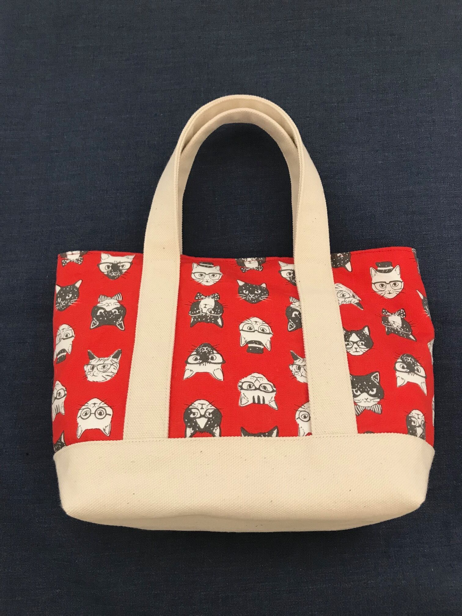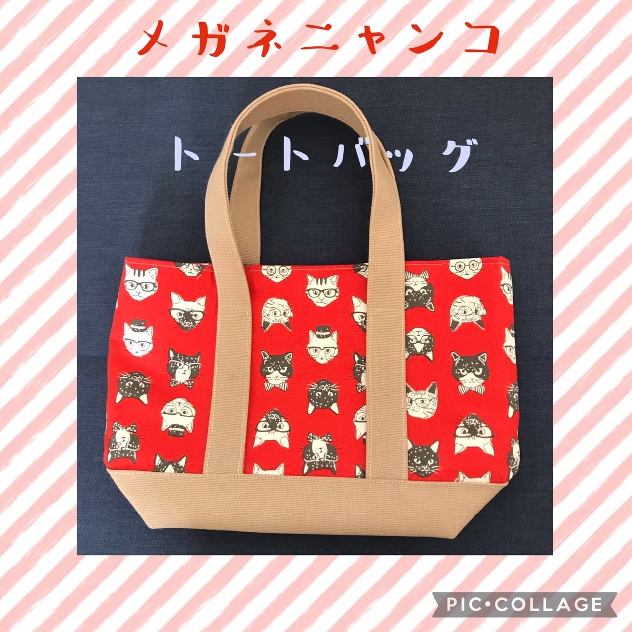 にゃんこ柄(メガネにゃんこ) お出かけトートバッグ♪ ハンドメイド