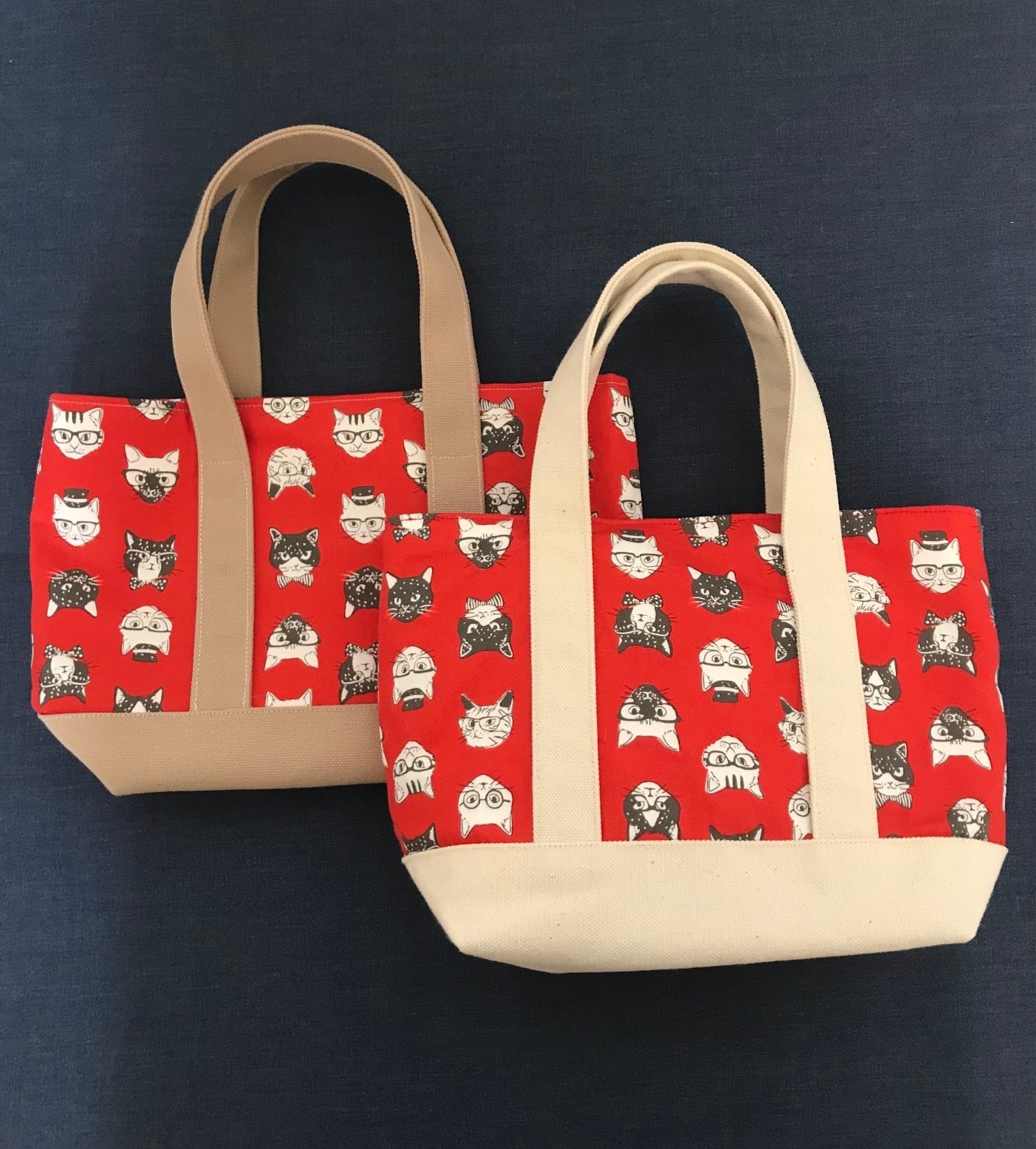ちょっとお出かけバッグにピッタリのにゃんこ柄トートバッグ。