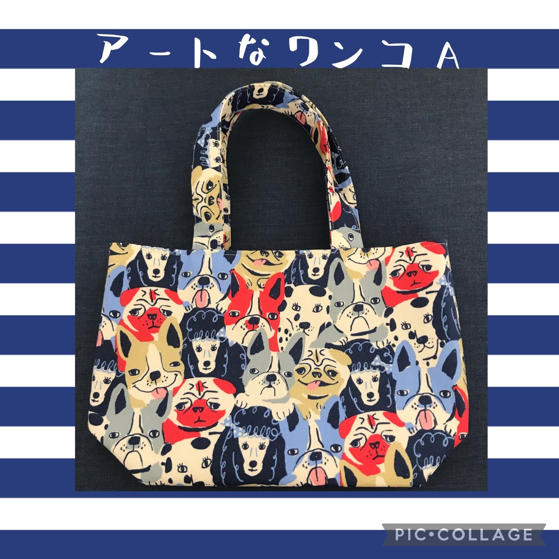 ワンコ柄(アートなワンコ) お散歩トートバッグ(Nタイプ) ハンドメイド