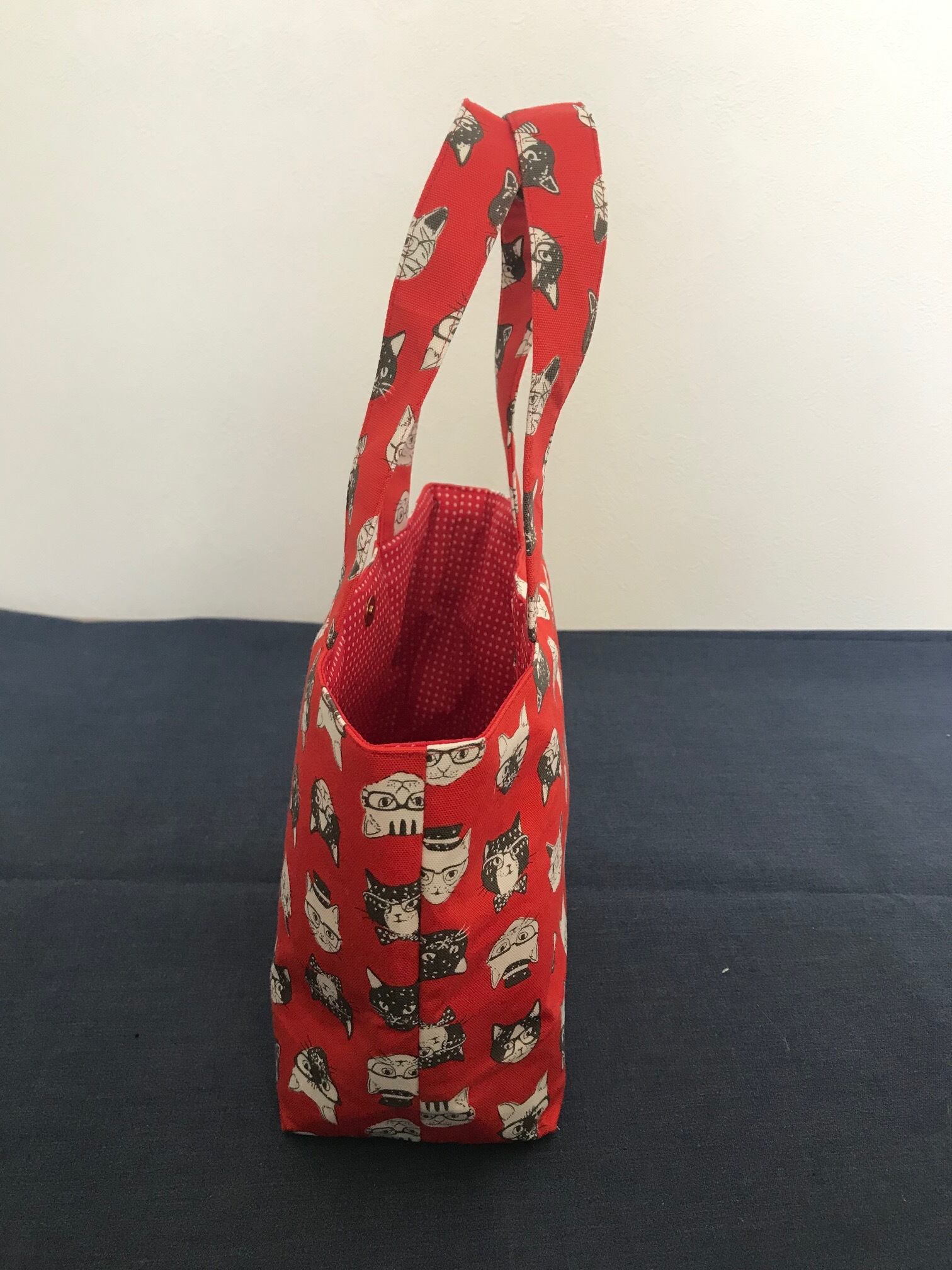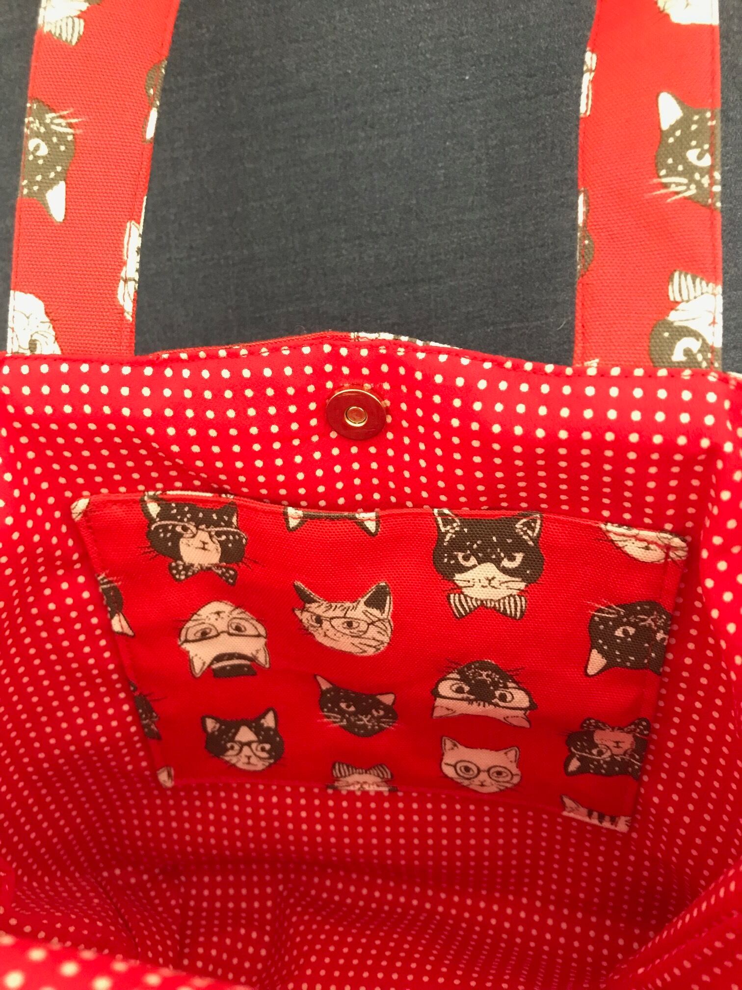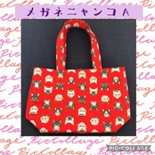 にゃんこ柄(メガネにゃんこ) お出かけトートバッグ(Nタイプ) ハンドメイド