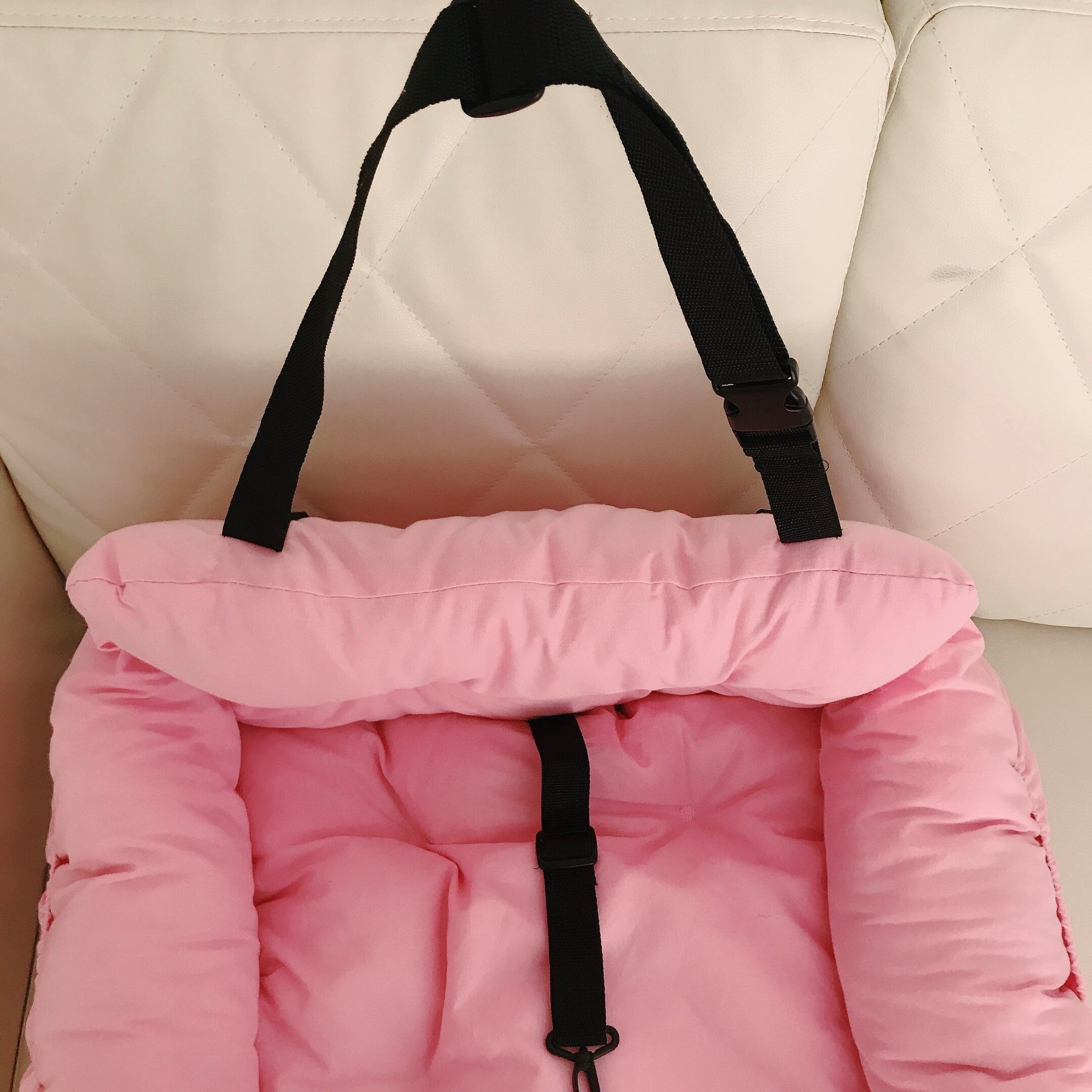 ペットドライブベッド 飛び出し防止リード&フック付 サイズL【ピンク・グレー】